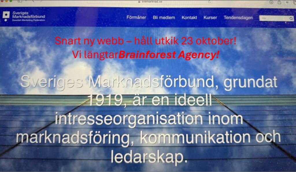 Den 23 oktober får Sveriges Marknadsförbund en ny webbdesign! Hurra! Brainforest Agency lanserar vår nya webb – samma dag som Tendensdagen!!!